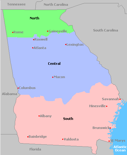 Georgia has been divided into three wine grape growing regions. North, Central, and South. The largest concentration of wineries can be found in Lumpkin and White Counties in the Northern region.